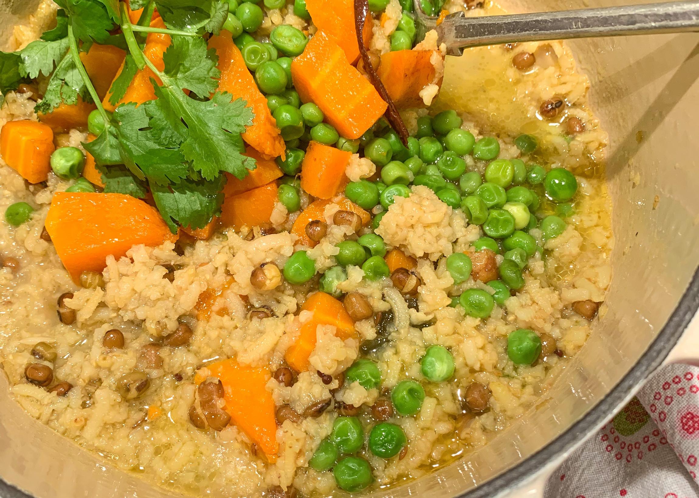 The idea is to make the kitchari and serve it topped with vegetables.